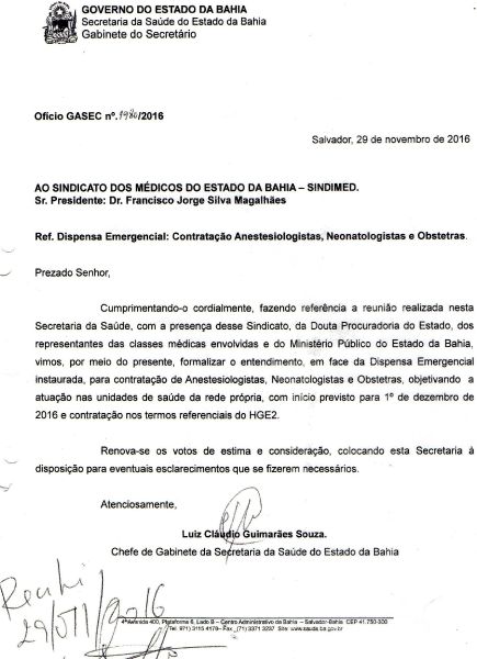 A Sesab finalmente apresentou uma proposta de regularização dos contratos de trabalho para os médicos que atuam como PJ nas maternidades Albert Sabin, Tsylla Balbino, Iperba e Hospital Roberto Santos. Na reunião com o Sindimed, na tarde desta terça-feira (29), o governo garantiu a contratação pela CLT, e anunciou que os contratos serão assinados já a partir do dia 1º de dezembro.